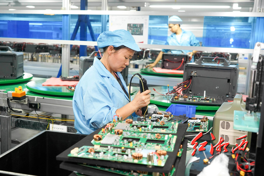 9月16日,在湘西高新区华美兴泰科技有限公司内,华美兴泰普朗克科技的员工正在进行组装。在完成最后的人工检验后,这批太阳能发电储能电源将发往海外。团结报全媒体记者 宿中元 摄