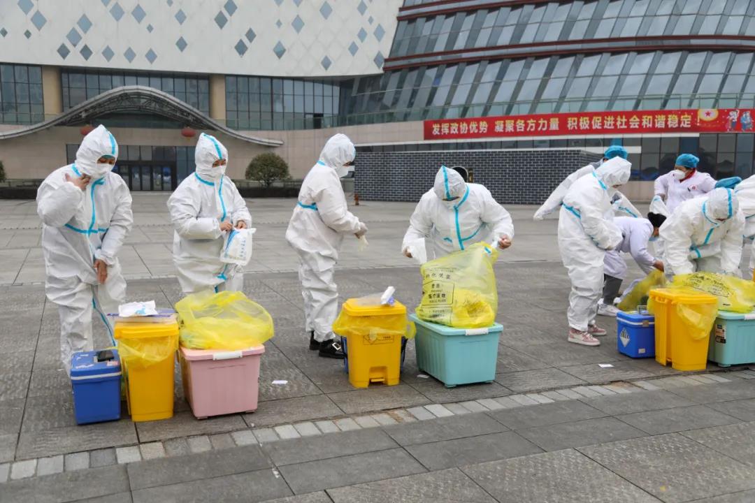 演练共分为宣传发动、现场组织及红码人员转运、样本采集、样本收集转运、医疗废弃物处置和终末消杀六个模块。
