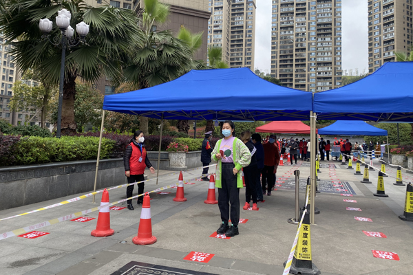 为营造真实场景,各演练现场严格实施管控,设置了等候区、采样区、缓冲区、临时隔离区等区域,并组织相关单位工作人员及志愿者维持现场秩序,提供采样流程指引服务,密切配合医务人员快速高效完成采样工作。