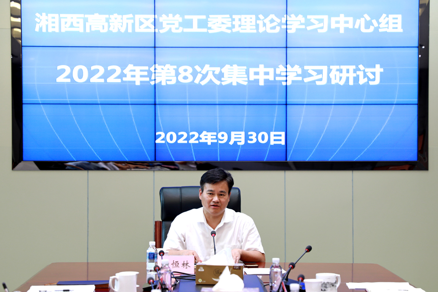 9月30日下午,湘西高新区党工委理论学习中心组举行2022年第8次集体学习。湘西高新区党工委书记向恒林主持学习并作总结讲话。