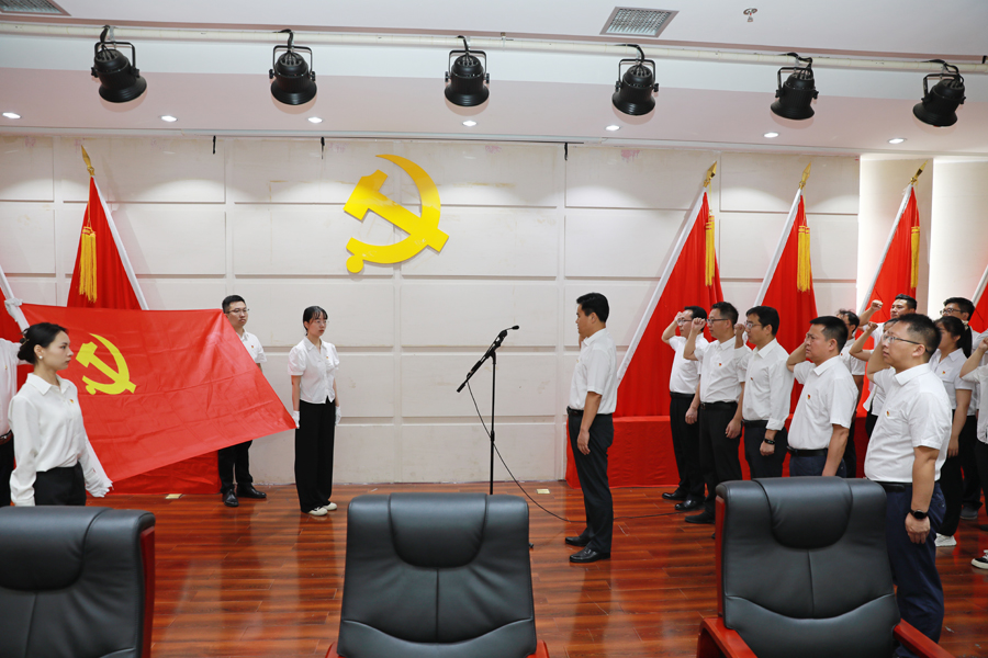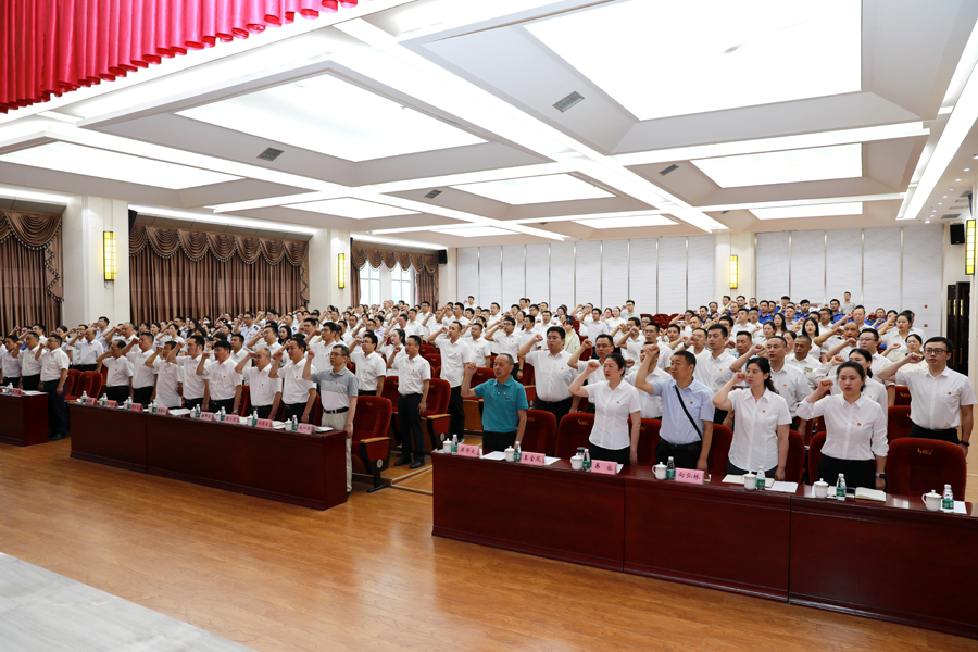 大会在庄严的国歌声中拉开帷幕。在新党员宣誓环节,全体新党员和与会老党员高举右手,面对鲜红的党旗,庄严宣誓。