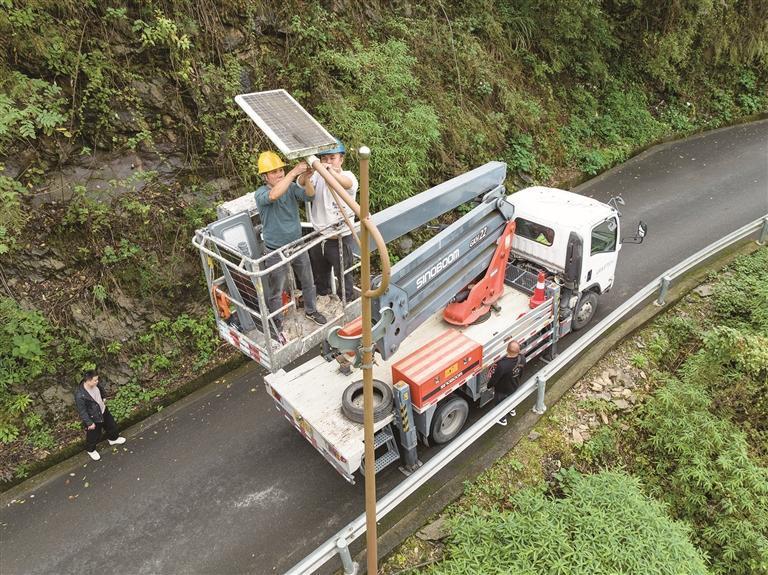 11月11日,吉首市吉凤街道捧捧坳社区,施工人员正在维修路灯。近日,湘西高新区管委会驻捧捧坳社区工作队积极听取群众意见,对该社区23盏路灯实施维修,新增路灯11盏,保障群众夜间出行安全,提升群众满意度和幸福感。