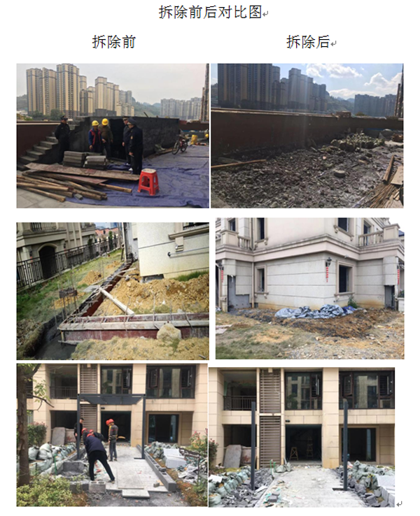 据悉,自11月2日拓展“两违”集中整治工作调度会后,多部门就制定周末巡查排班表,对商住小区违建问题严格管控,加强不间断巡查力度,无人机巡查次数,严厉打击个别业主在周末空隙对违规建筑进行抢搭抢建行为,对发现的3户违规建筑,进行了拆除处理。为杜绝新增“两违”,两违办一是在各小区大力开展“两违”服务前置活动,针对正在装修及预装修业主开展事前服务,依据法律法规及“两违”相关政策逐户进行法制宣讲。二是加大执法力度,提供有力执法保障,部署执法队员入驻小区,全面加强商住小区巡查执法力度,并设立举报电话:0743-8513735,接受群众举报。呼吁广大业主共同监督,保护小区规划用地,就是保护业主共同权益,创建和谐美丽的居住环境。