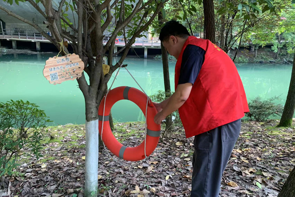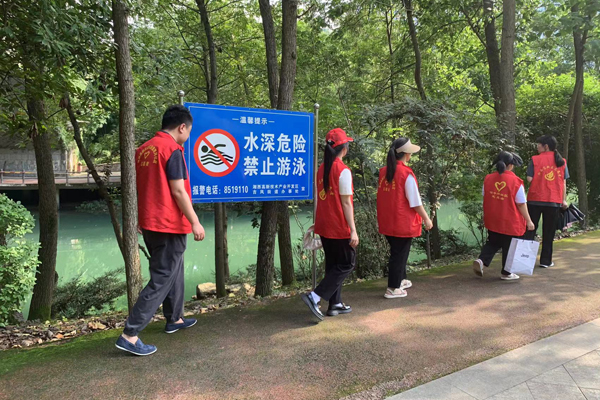 巡河过程中,志愿者们向过往居民群众宣传防溺水安全知识并查看沿河步道防护措施、警示标语、救生设施情况,巡查是否有青少年私自下河游泳玩耍,发现有青少年在河边玩水立即劝其离开,防止溺水事故的发生。