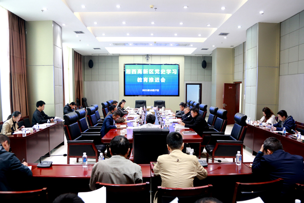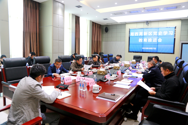 10月27日,湘西高新区召开党史学习教育工作推进会,传达学习省委党史学习教育领导小组办公室会议、州委党史学习教育领导小组办公室第9次会议、全州党史学习教育座谈会精神,安排部署下一阶段湘西高新区党史学习教育相关工作。湘西高新区党工委书记陈晓龙、党工委副书记、管委会主任陈文君,在家副处级以上干部,各部门主要负责人,区党史学习教育领导小组办公室全体人员参加会议。