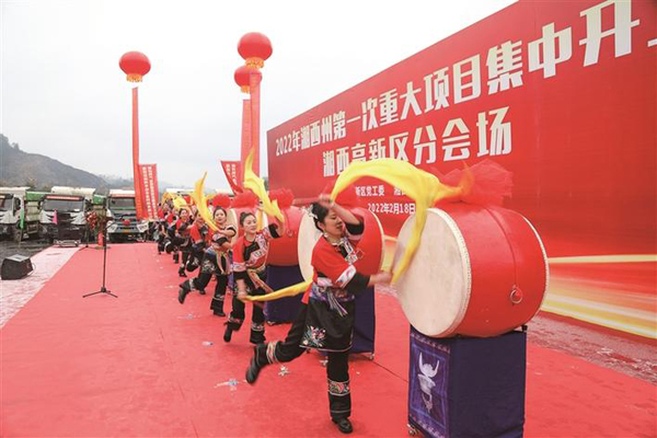 2月18日,2022年湘西州第一次重大项目集中开工。在湘西高新技术产业开发区分会场,开工的重点项目为5个,总投资近25亿元。