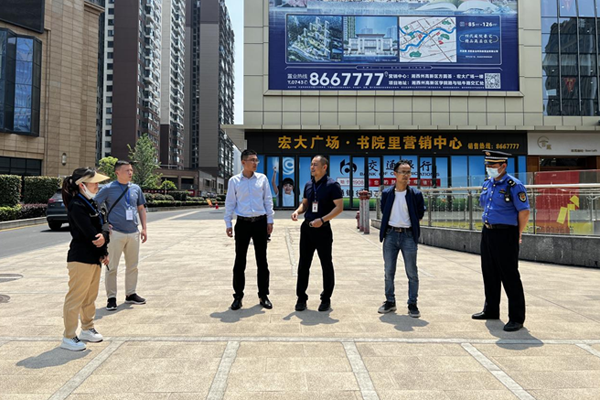 在宏大广场,检查组一行针对宏大广场前坪摩托车(电动车)乱停乱放现象,进行现场检查,要求责任单位立即加以整改。