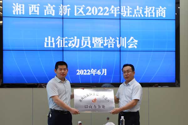 6月6日上午,湘西高新区召开2022年驻点招商出征动员暨培训会议。湘西高新区党工委副书记、管委会主任戴晓军,高新区党工委委员、管委会副主任黄江勇,高新区党工委组织部部长、管委会四级调研员陈志刚以及相关部门负责人,长三角驻点工作组成员、粤港澳大湾区驻点工作组成员等参加会议。
