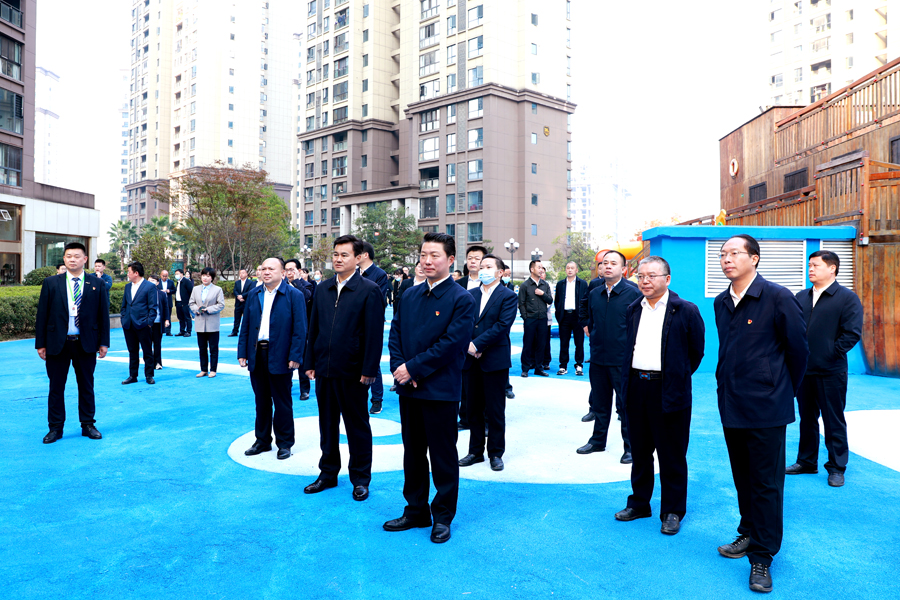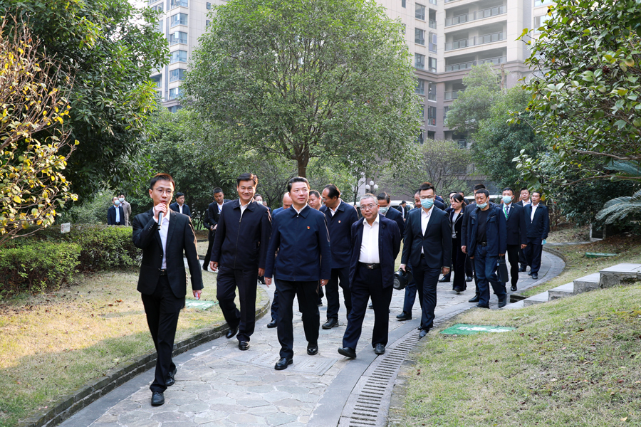 在溶江小区内,与会人员沿着“静园”池塘水系,边走边看,感受小区清晨“淡香扑鼻清溢流”的美景。溶江小区依山而建,傍水而居,环境优美,共建有高层住宅42栋,房屋5266套,小区绿化面积10万㎡,绿地率达到32%,荣获了湘西州园林式小区称号。小区功能配套齐全,设有党群服务中心、卫生服务中心、幼儿园、羽毛球馆、篮球场、游泳池等公共设施,是集多功能、多业态为一体的高品质住宅小区。