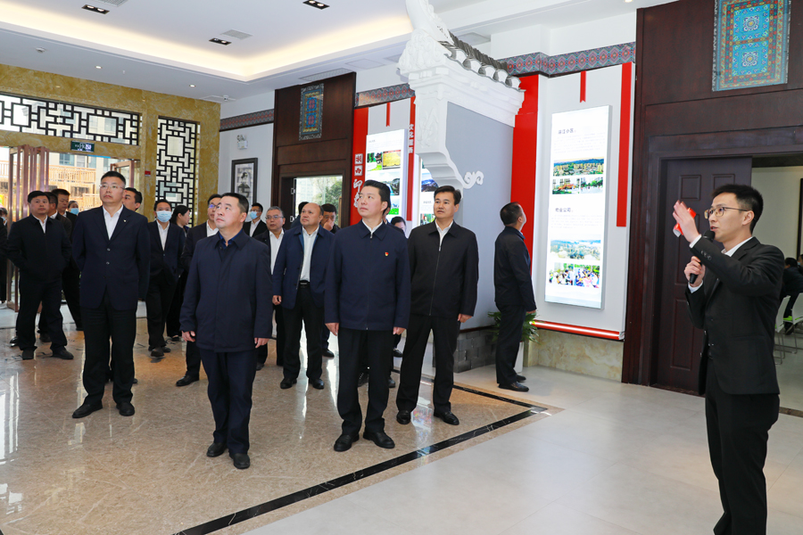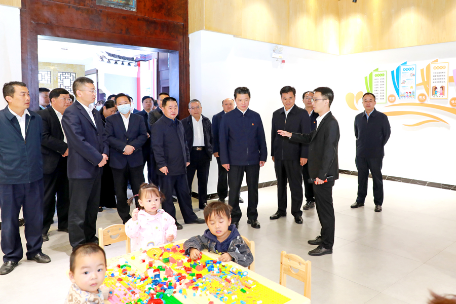 溶江小区党群服务中心、新时代文明实践站,涵盖文化展厅、志愿者之家、党群议事厅、儿童益智厅、健康加油站等功能。与会人员仔细观看每一区域介绍展板,并与室内参加公益课堂或活动的群众互动,详细了解中心管理和运营情况。