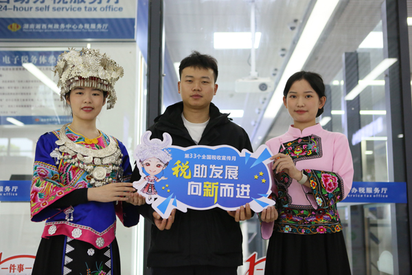 “莫如!几年没隆高新区办税服务厅办四,他里木需哟里办么捏务?”(您好,欢迎您到高新区办税服务厅办事,请问您需要办什么业务?)税务干部熟练地使用苗语与苗族纳税人交流。为更好地服务纳税人缴费人,湘西高新区税务局推出苗语、土家语、汉语“三语服务”,促进纳税服务提质增效,提高纳税人缴费人满意度和获得感。“为了应对纳税人不熟悉普通话的问题,我们安排导税人员利用晨会夕课的时间,开展方言、少数民族常用语的学习,目前已经能够引导少数民族纳税人办理业务,我们也通过合理调配窗口人员,设置‘民族语言服务专窗’,有效解决纳税人因语言不通带来的办税不便问题。”湘西高新区办税服务厅负责人吴苓璐介绍。