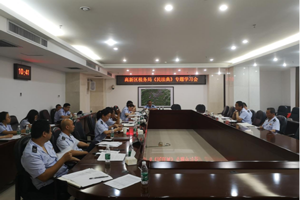 2024年5月是全国第四个“民法典宣传月”,为进一步提升税务系统干部的依法行政水平,确保税务工作在法治轨道上稳健运行,高新区税务局举办了民法典专题学习会。