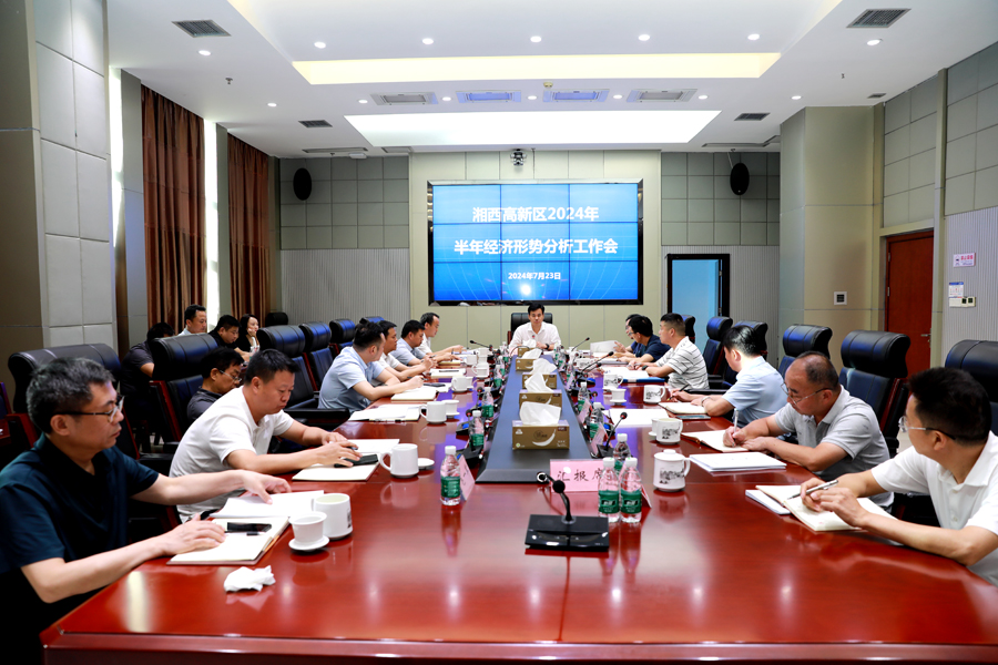 7月23日,湘西高新区召开2024年半年经济形势分析会,传达州委常委会(扩大)会议、县市委书记座谈会议精神,全面回顾总结全区上半年工作,安排部署下半年工作,动员全区各级各部门进一步坚定信心,紧盯目标任务,强化工作举措,确保工作在三季度有起色,四季度圆满完成,推动经济社会高质量发展。区党工委书记向恒林,党工委副书记、管委会主任戴晓军出席会议并讲话。