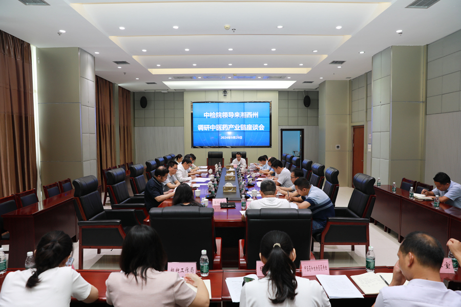 彭延敏对中检院一行的到来表示欢迎,对一直以来的支持和帮助表示感谢,希望中检院能一如既往的给予湘西州更多的帮扶,助力湘西州中医药和生物医药产业高质量发展。