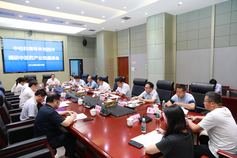 9月29日,中国食品药品检定研究院副院长张辉一行来湘西高新区调研中医药和生物医药产业发展情况。省药品检验检测研究院院长胡斌、州委常委、州委政法委书记、州中医药和生物医药产业链副链长彭延敏,州市场监管局局长张立新,高新区党工委书记向恒林,党工委副书记、管委会主任戴晓军以及区内生物医药企业代表参加座谈。