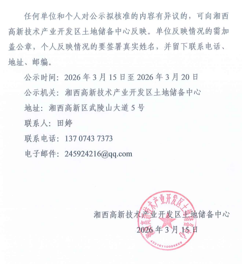关于湘西高新区2026年第三批土地储备专项债项目地块收储价格的公示-湘西高新技术产业开发区