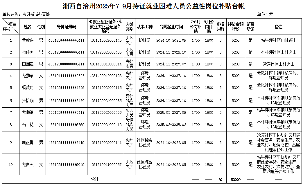 按照《湖南省公益性岗位开发管理办法(试行)》湘人社规〔2020〕7号文件要求,现对吉凤街道办事处享受2025年7-9月份公益性岗位补贴情况进行公示(公示名单见附件)。